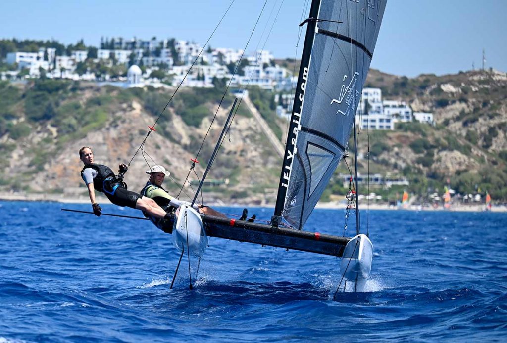 What was once reserved for professionals and often ended in incredible “crashes” should now be manageable for regular sailors with trapeze experience. In addition to the effect of making flying ships manageable for recreational sailors, the performance and fun factor offered by such a flight control system are significant. With a stable flight position, the boat can now fly over the water at incredible speeds over extremely long distances.